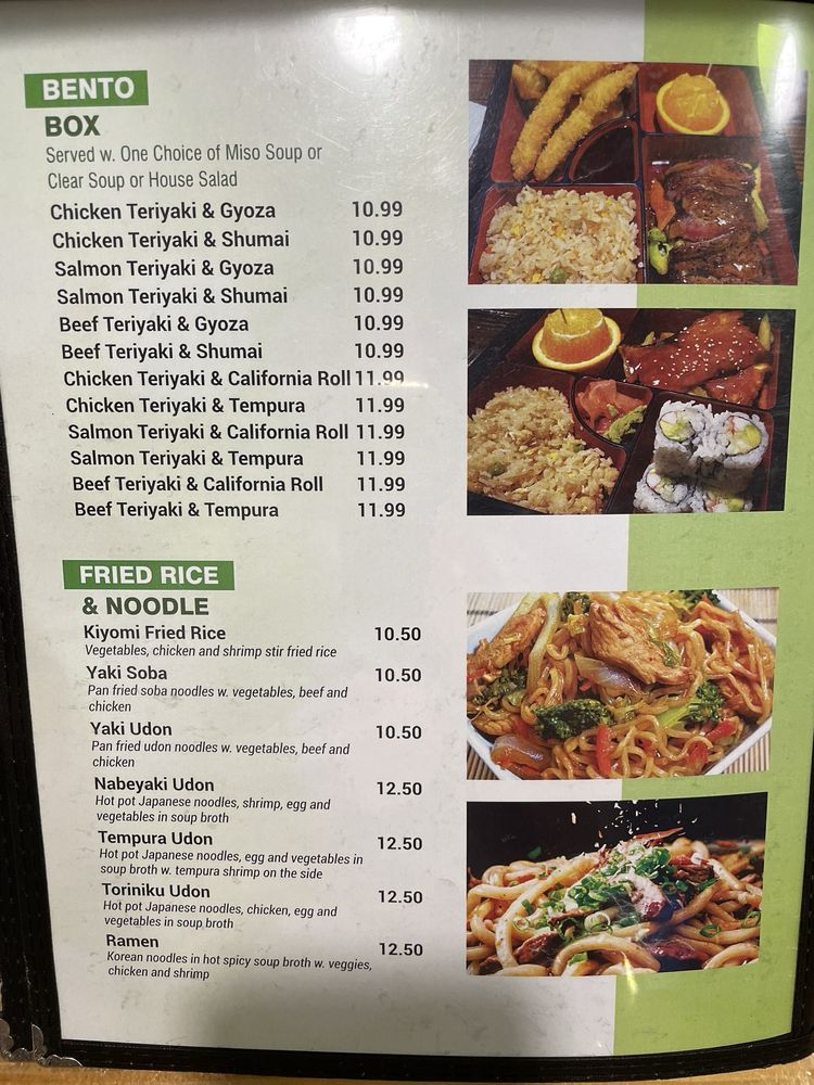 Kiyomi, a Japanese restaurant located in Syracuse, IN, offers a wide range of delicious dishes with many vegetarian options. Customers rave about the fresh and flavorful sushi, with standout items like the Wawasee roll and the Volcano roll. The bento box selection and sashimi are also highly recommended. The service is attentive and friendly, providing a great dining experience. The homemade teriyaki sauce adds a special touch to dishes like the teriyaki beef and shrimp bento box. With a welcoming atmosphere and affordable prices, Kiyomi is a hidden gem worth visiting for a taste of authentic Japanese cuisine. Takeout and delivery options are available, making it convenient to enjoy Kiyomi's delectable offerings. Don't miss out on this charming restaurant in Syracuse!